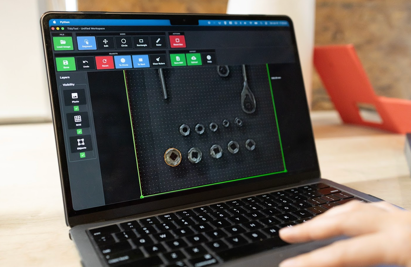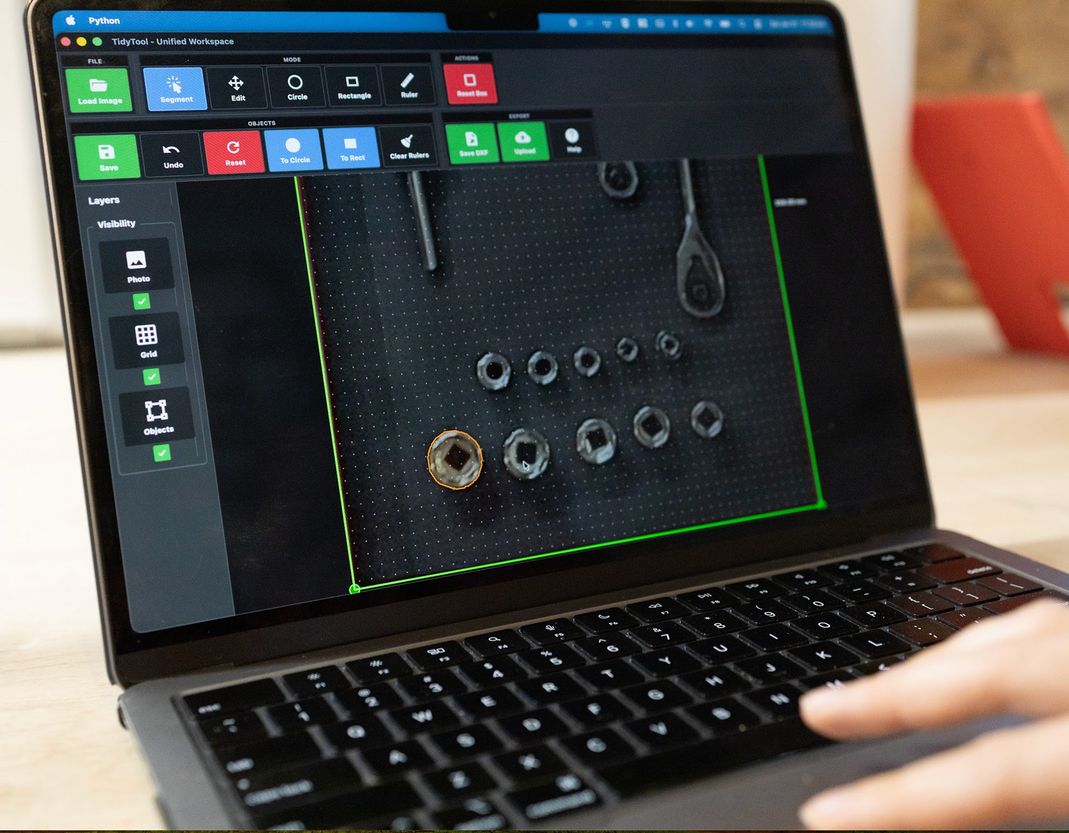 Our AI segmentation software allows us to identify and trace tools with high precision using just a photo. By training the system to recognize specific shapes and outlines, the software produces accurate digital cut paths that match each tool’s unique form. This method eliminates the inconsistencies and potential errors that come with manual tracing, such as uneven lines or incorrect sizing.